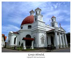 Berusia lebih dari 200 tahun dan dijadikan "tetenger" (Landmark) kota Semarang. Terletak di Jalan Let Jend. Suprapto no.32. Dinamai gereja Blenduk karena dibagian atas 2 menara dan sebuah kubah besar. Kubah dalam bahasa Jawa berarti Blenduk. Bangunan ini mulai berdiri pada tahun 1753, digunakan untuk gereja NEDERLANDSCHE INDISCHE KERK. Gedung ini diperbaiki lagi pada tahun 1756, 1787, dan 1794. Pada tahun 1894 bangunan ini dirombak seperti keadaan sekarang. Arsitek pembangunan ini adalah HPA DE WILDE dan WWESTMAS. Keberadaan gereja ini berperan besar terhadap perkembangan agama kristen di Semarang.